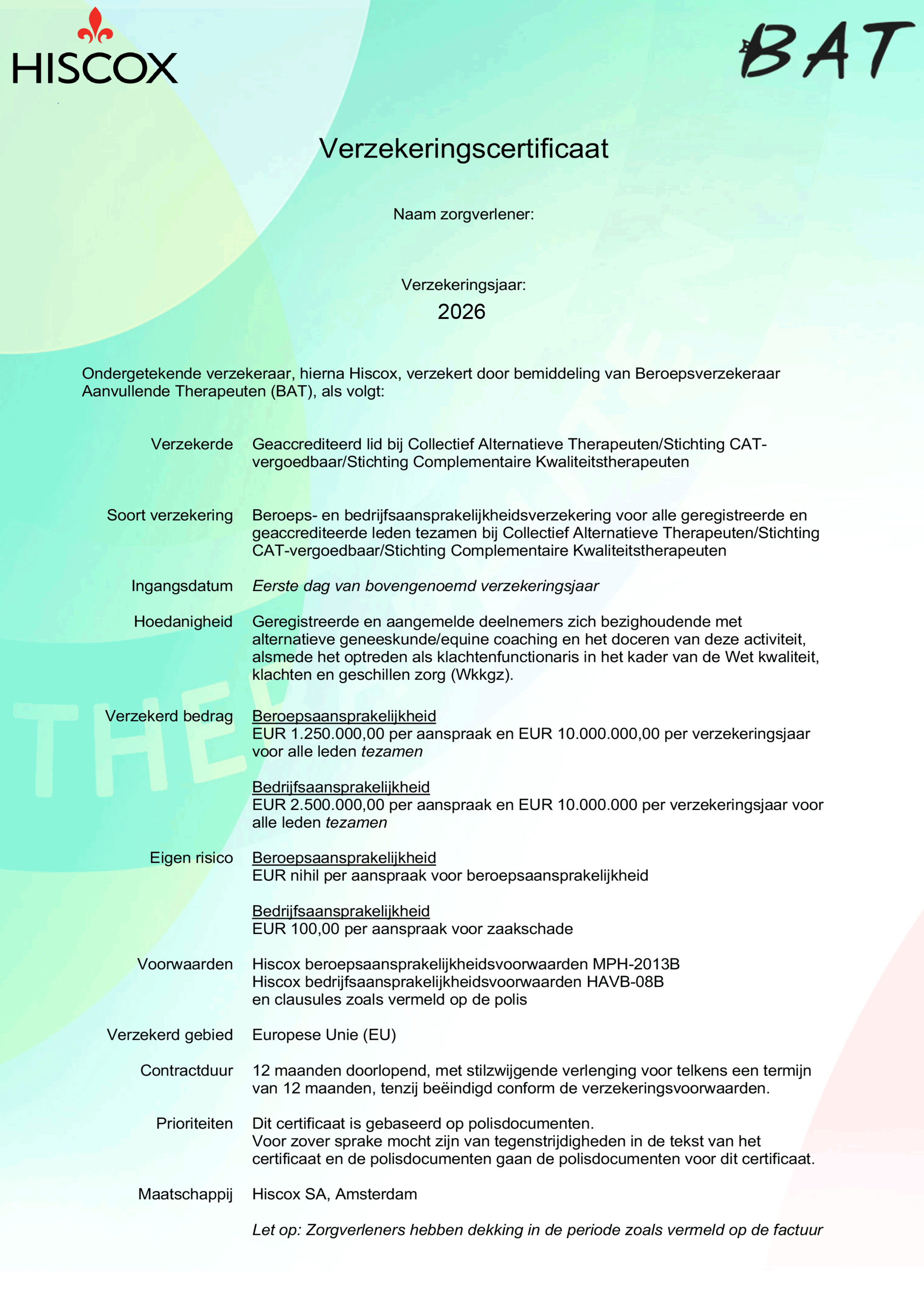 Voor alle behandelingen geldt: